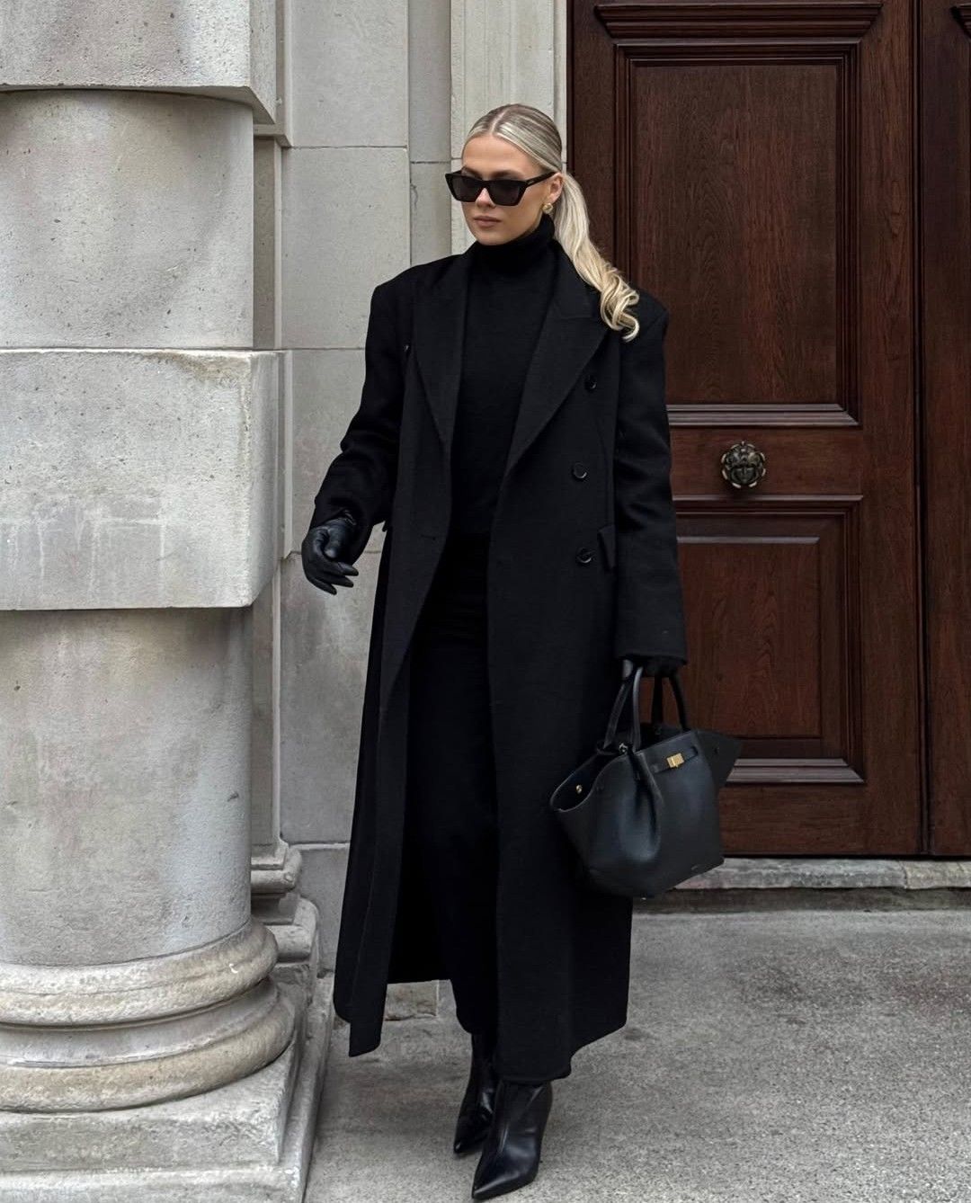 Manteau cape ceinturé à col montant silhouette fluide et affirmée